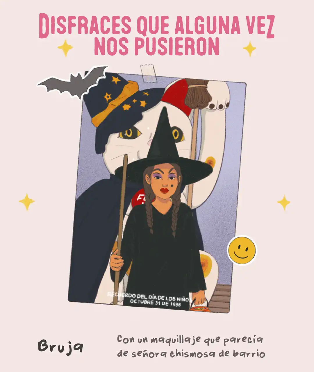 ¿A cuántos aquí les tuvieron que arrebatar un disfraz que se volvió la piel de su piel por años felices de infancia? ¿A cuántos les improvisaron uno con el de un primo, con la ropa de los papás? Halloween en Colombia tiene una larga tradición de disfraces con los que nuestros familiares y amigos llenaron una infancia de fotos y recuerdos que hoy muchos atesoramos mientras, de puerta en puerta, repetíamos: “Triki triki Halloween, quiero dulces para mí”. Invitamos a Ana Guarín a ilustrar algunos de esos disfraces que, sin saberlo, se quedaron para siempre en nuestra memoria.