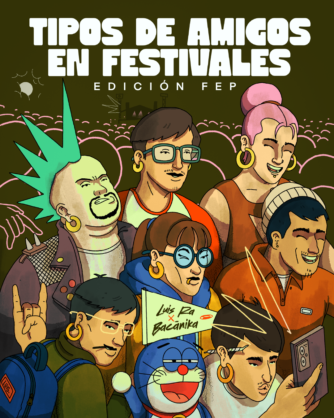 ¿Quién no ha ido a un festival y ha terminado adoptando —sin darse cuenta— a un grupo completamente nuevo? Sin razón aparente, entre la música, el calor y esa energía colectiva que no se puede explicar, aparecen personajes que, por obra y gracia del caos —o de alguna lógica secreta del parche—, se convierten en parte esencial de la experiencia. No queríamos dejar pasar este fenómeno ya casi ritual y definitivamente inevitable, por eso invitamos a LuisRa a ilustrarnos cuáles son esos tipos de amigos que aparecen en los festivales y que, aunque duren lo que dura un set, se sienten como de toda la vida.