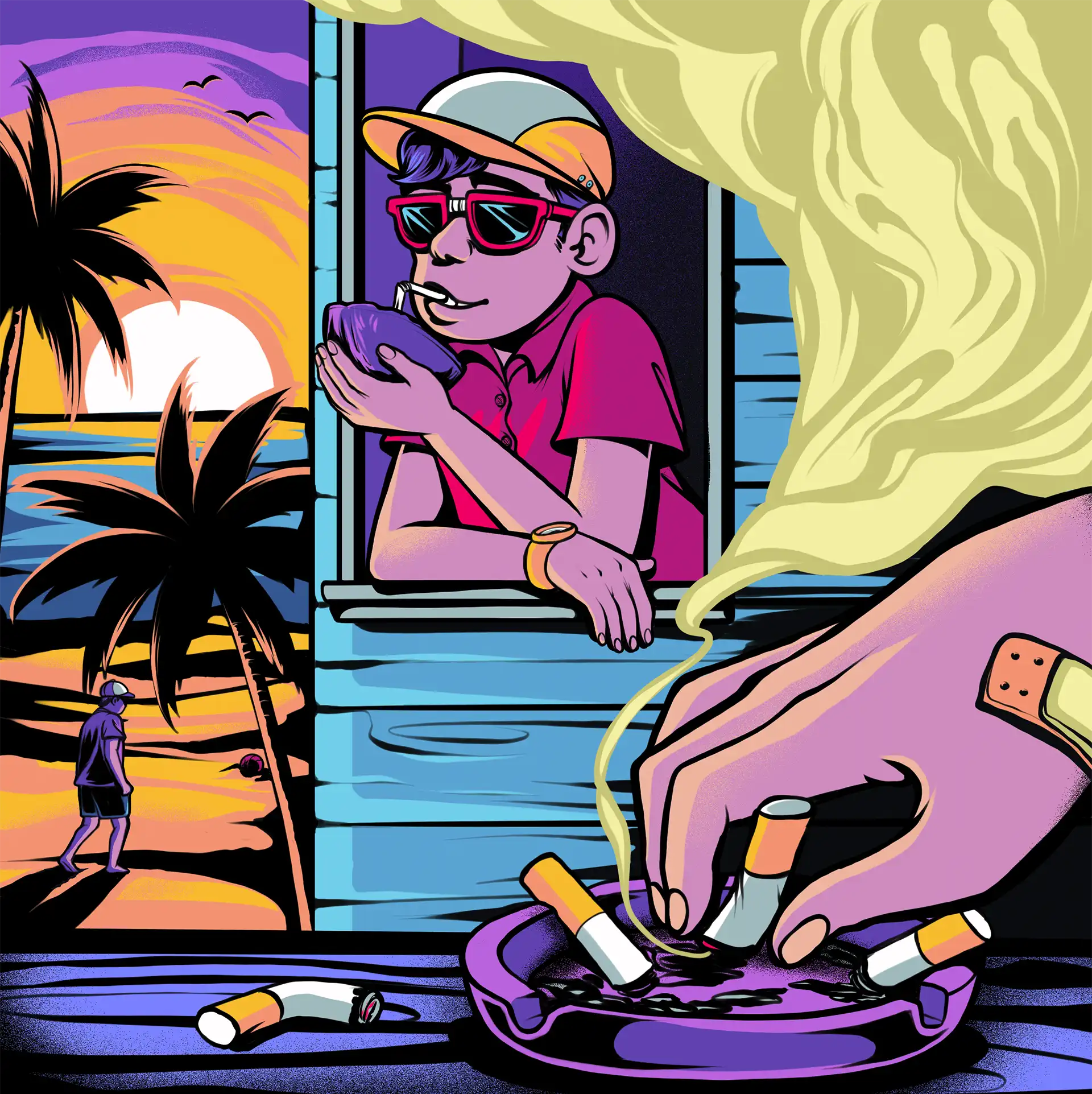Enciendo uno más frente a la ventana. En minutos saldré para un festival donde no podré fumar. Mañana me voy de vacaciones con mi pareja y mi familia al mar. No me gusta fumarles encima. Es probable que este sea mi último cigarrillo en un rato. Contemplo que pueda ser el último entre últimos. Intento disfrutar más cada calada, pero no lo logro. Subo al baño a rastrillarme la lengua con el cepillo de dientes hasta quitarme ese sabor malsano. Desde hace un año me pasa esto a mitad de algunos cigarros. Estoy varado en un limbo donde ya no lo disfruto como antes ni me atrevo a parar de nuevo. Me molesta notar que preferiría no tener que pensar en estas vainas.
