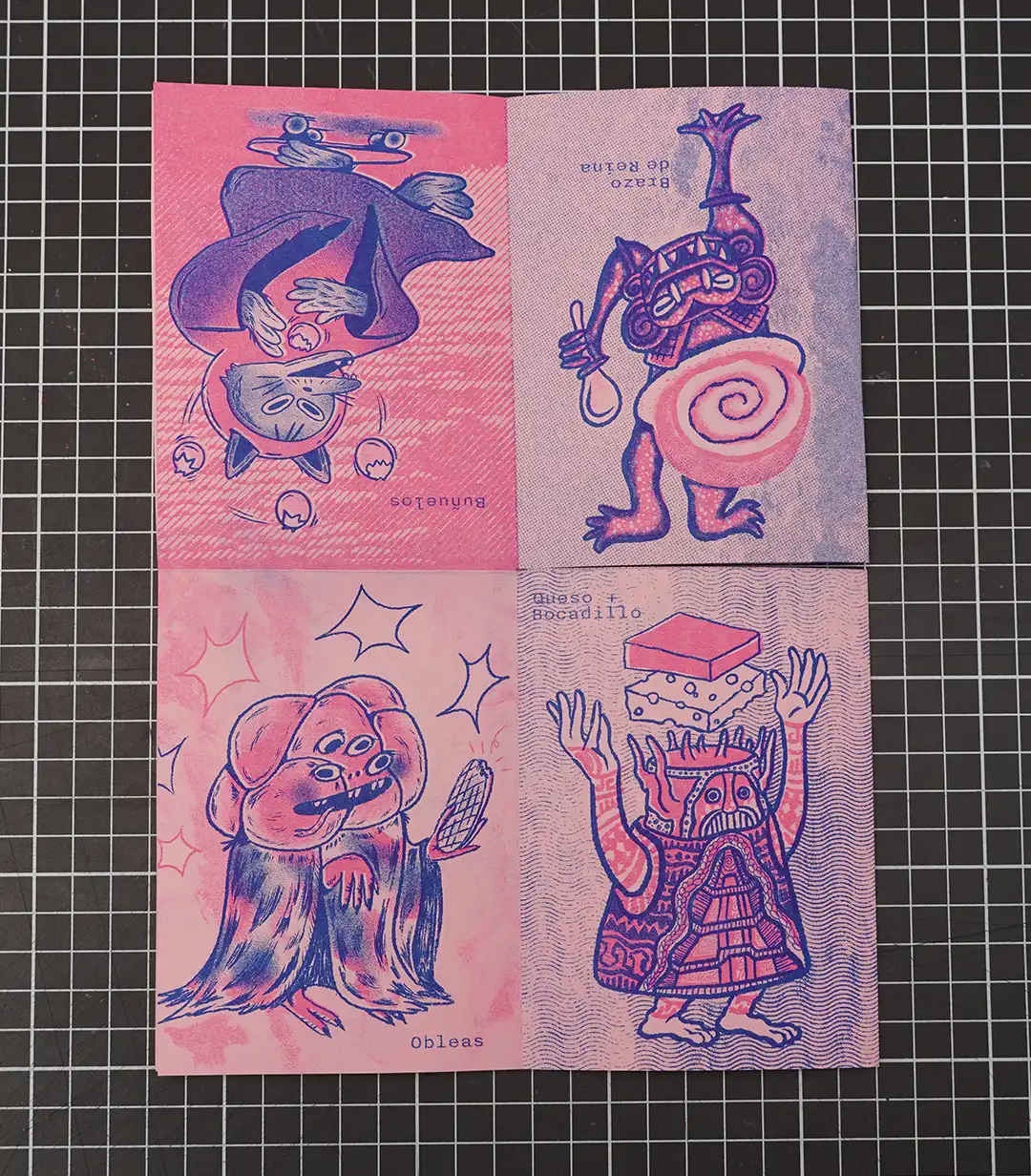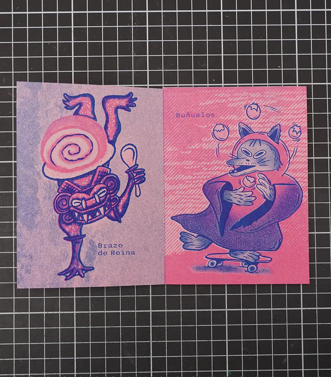 Los destrozos, las tintas secas y las hojas puestas en el sentido contrario a la hora de imprimir hacen parte del espiritual proceso de trabajar con risografía, un camino creativo que Daniela y David no han construido solos, sino con una red de artistas en América Latina y Europa que ha encontrado en ese pedacito gráfico de Colombia, una oportunidad de colaboración para seguir experimentando.
