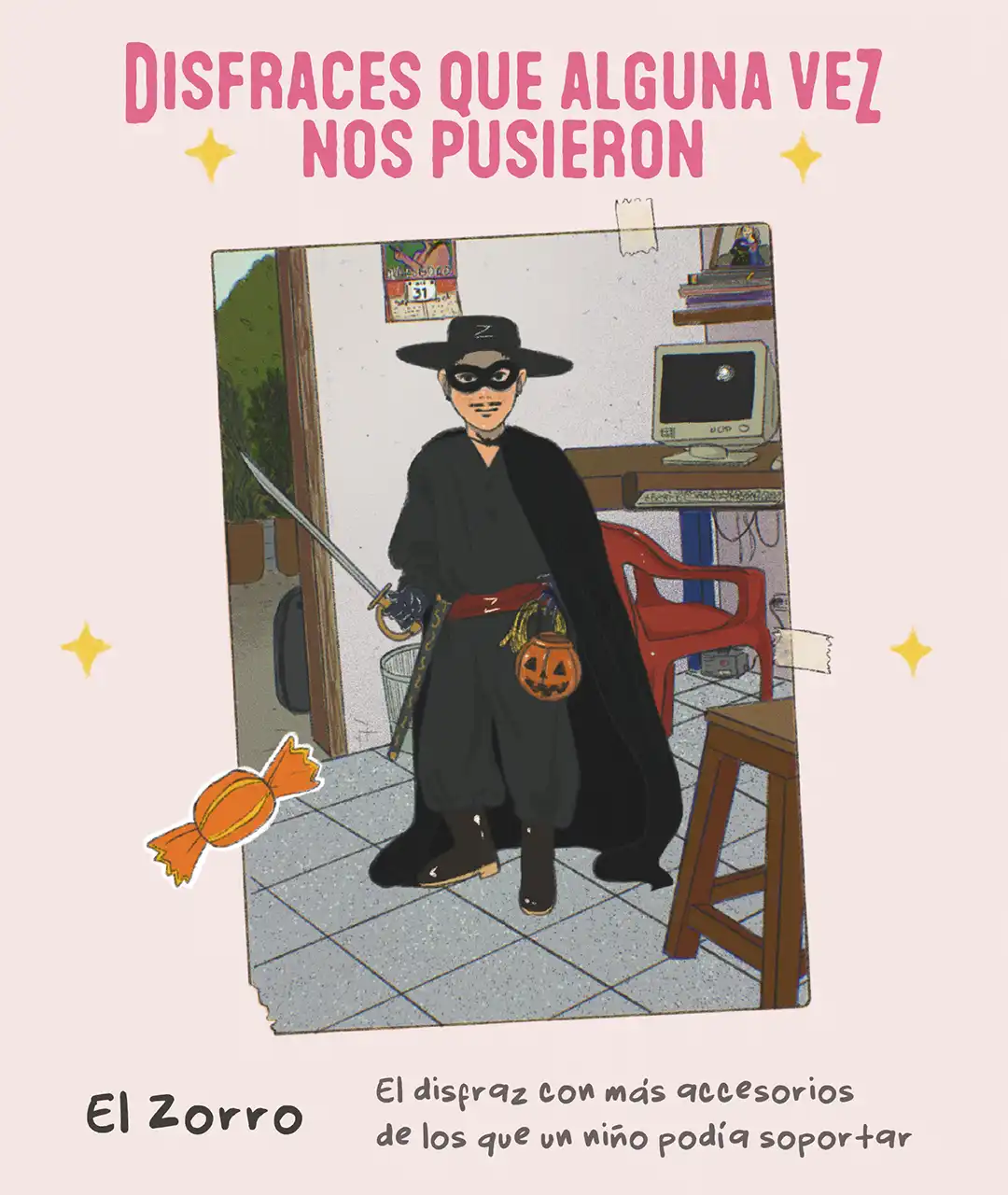 ¿A cuántos aquí les tuvieron que arrebatar un disfraz que se volvió la piel de su piel por años felices de infancia? ¿A cuántos les improvisaron uno con el de un primo, con la ropa de los papás? Halloween en Colombia tiene una larga tradición de disfraces con los que nuestros familiares y amigos llenaron una infancia de fotos y recuerdos que hoy muchos atesoramos mientras, de puerta en puerta, repetíamos: “Triki triki Halloween, quiero dulces para mí”. Invitamos a Ana Guarín a ilustrar algunos de esos disfraces que, sin saberlo, se quedaron para siempre en nuestra memoria.