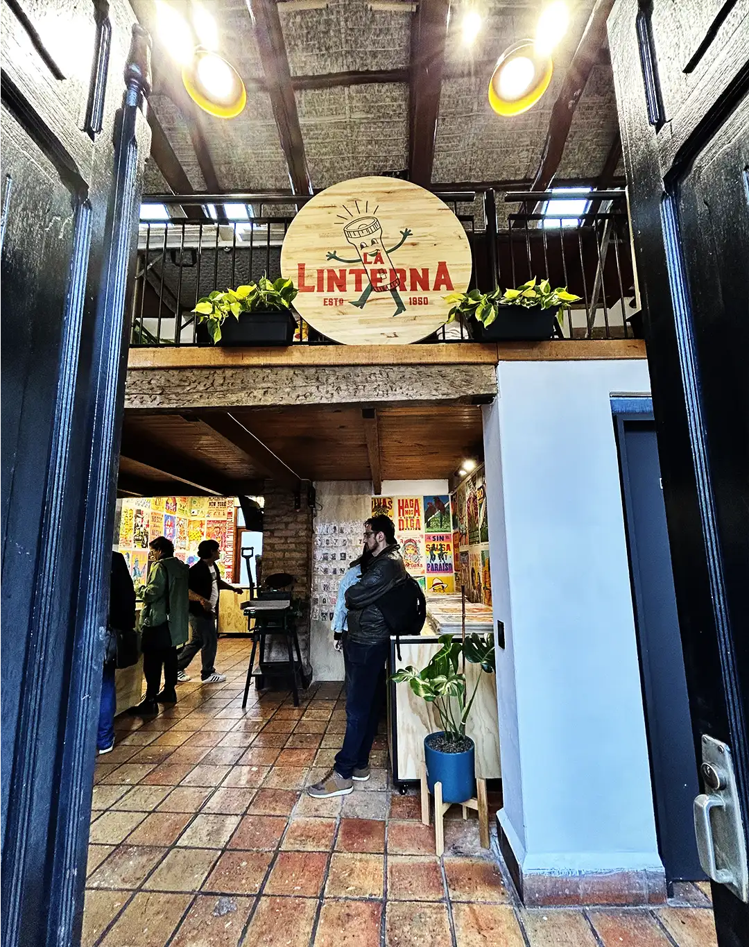 En una esquina empinada de La Candelaria, una puerta de madera alta deja ver las paredes del interior. Sin embargo, para una miope, el escenario era el de una lucha campal entre las paredes blancas y la parranda de colores de los carteles apretados que buscan lucirse sobre ella. Cinco pasos adelante y una limpiada a los lentes de las gafas, terminan de darle forma a esa casa de ladrillos color caoba.