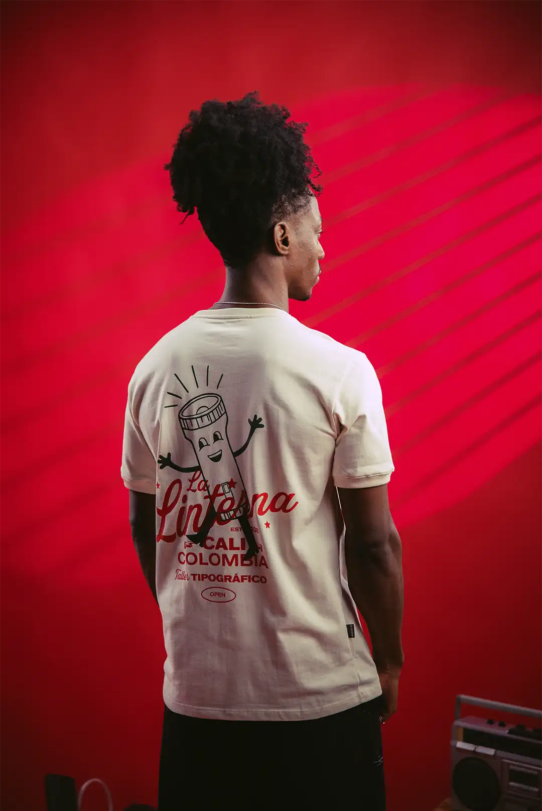 “La Linterna tiene algo que muchas marcas buscan y no tienen: alma”, dice Sol. “Uno ve una gráfica en la calle y sabe que es de aquí”. La apuesta fue trasladar ese lenguaje al cuerpo, respetando su origen y pensando en prendas de calidad, versátiles y con una dirección clara. Hoy, la línea textil trabaja con algodón 100%, explora procesos sostenibles y desarrolla colecciones nostálgicas que dialogan con la memoria gráfica colombiana.