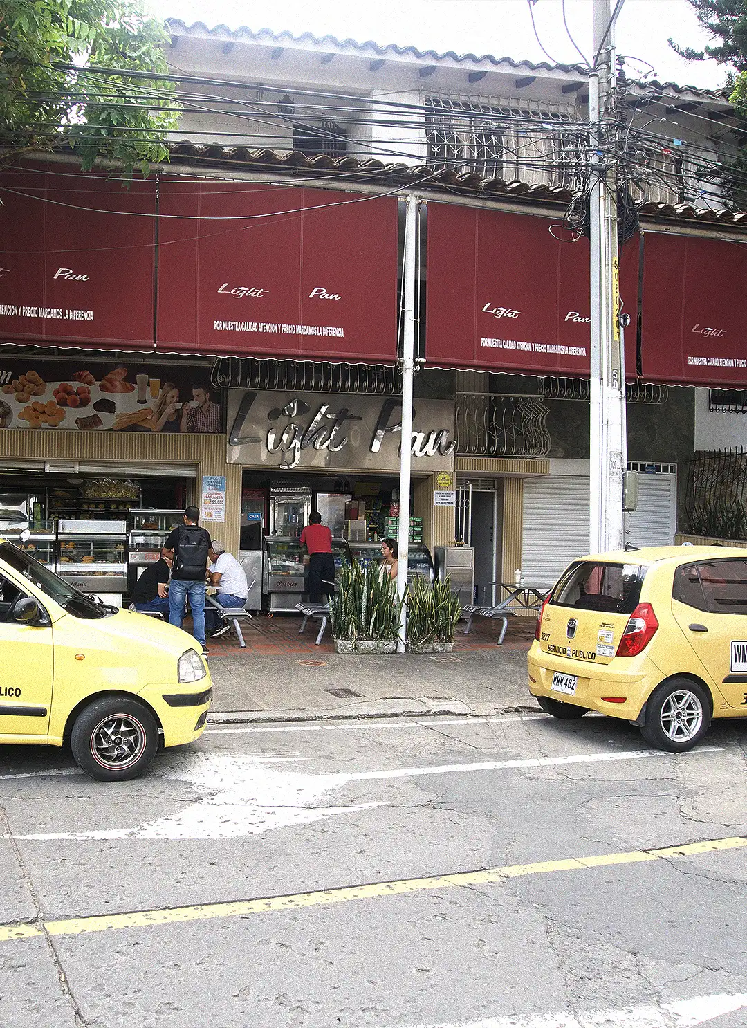 Light Pan es un paradero obligado para taxistas y conductores que ya tienen medido el tiempo entre recorrido y recorrido para bajar por un pandebono caliente. Es de esos sitios donde el flujo de gente no para, la vitrina siempre está llena y el olor a pan recién horneado recibe a cualquiera que entra.