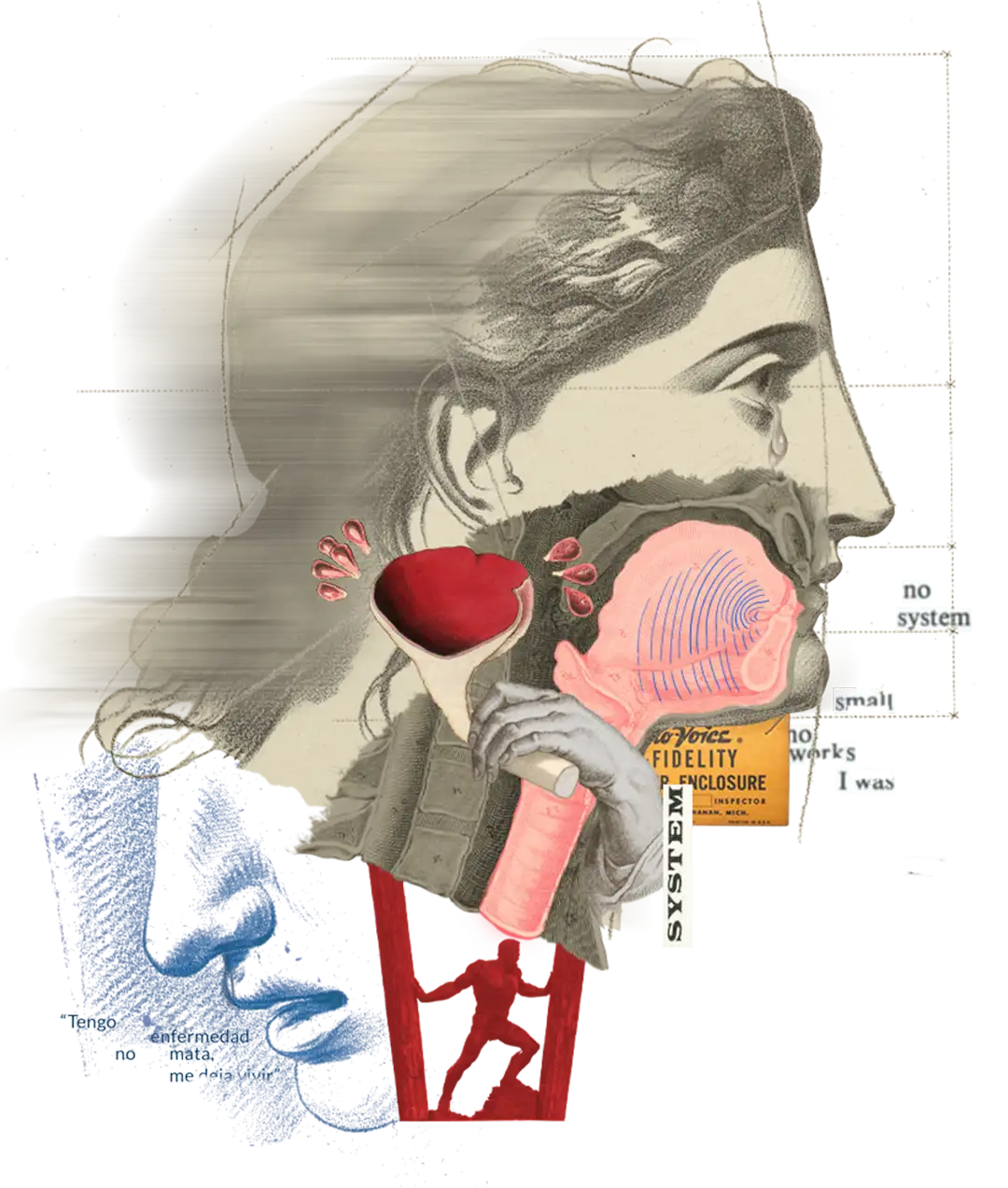 He pensado en qué es mi voz cuando estoy en silencio. La imagino como un ánima que recorre mi interior: asciende hasta el lóbulo parietal y desciende hasta el dedo gordo del pie, sale del dedo índice de la mano izquierda, atraviesa los pulmones y el corazón y se desboca hasta llegar al dedo meñique de la mano derecha. La imagino alimentándose de lo que guardo en mí: de mi sangre, de mis vísceras, de mis temores y de mis alegrías. Así hasta que sale de mí y se convierte en palabra. Aparece con tono y textura y se convierte en lo dicho. La voz es lo que al final nos permite ser en el exterior.
